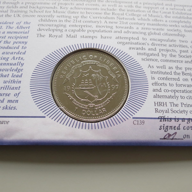 Royal Society of Arts 250th Anniversary 1 Dollar Coin Cover